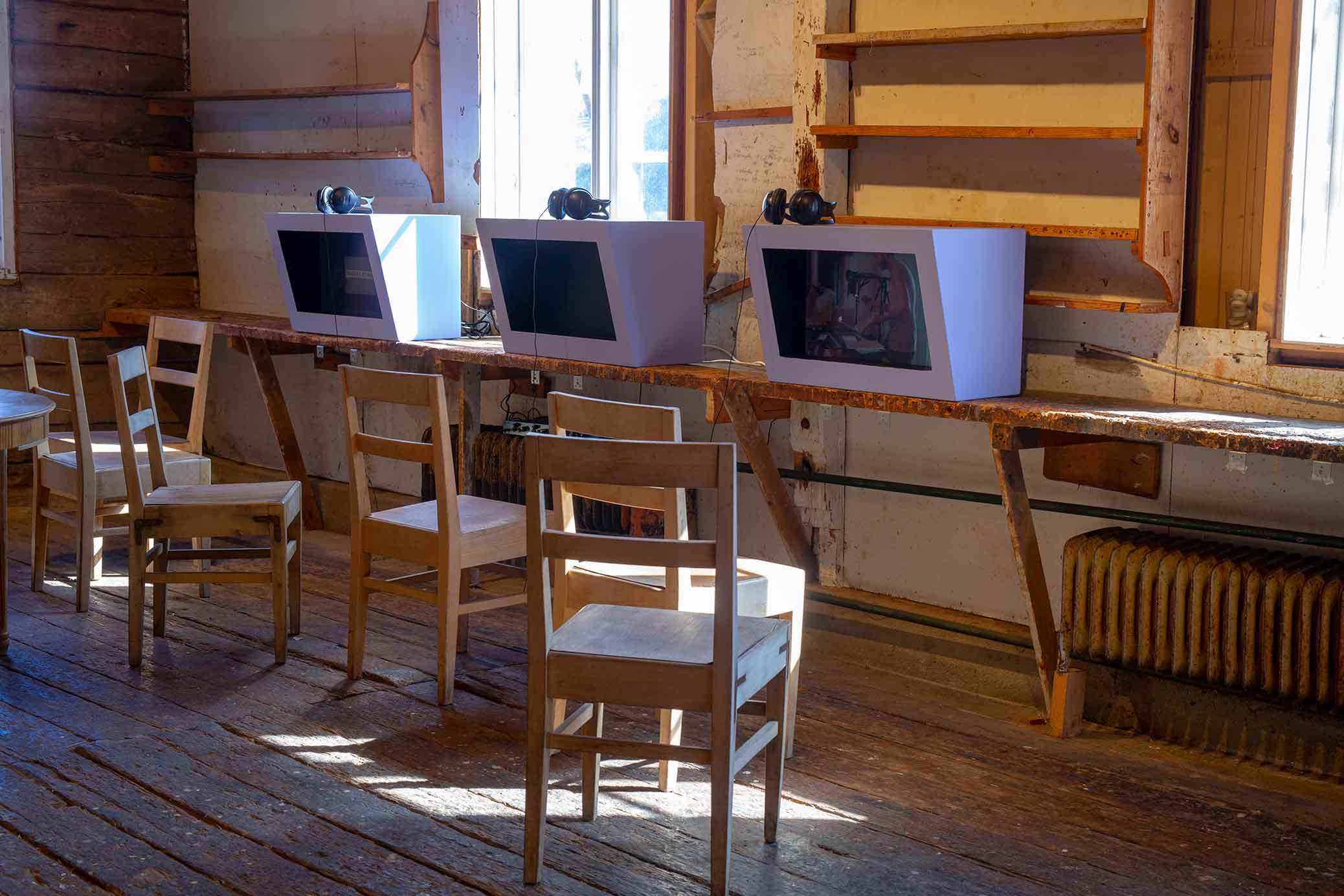 Year: 2016 Technique: Plywood, wood, vinyl, cloth, speakers, media player och electronics Dimensions: 122 x 302 x 45 cm Voices: Emma Jansson, Alexandra Shabo Courtesy of Alma Löv Museum, Östra Ämtervik