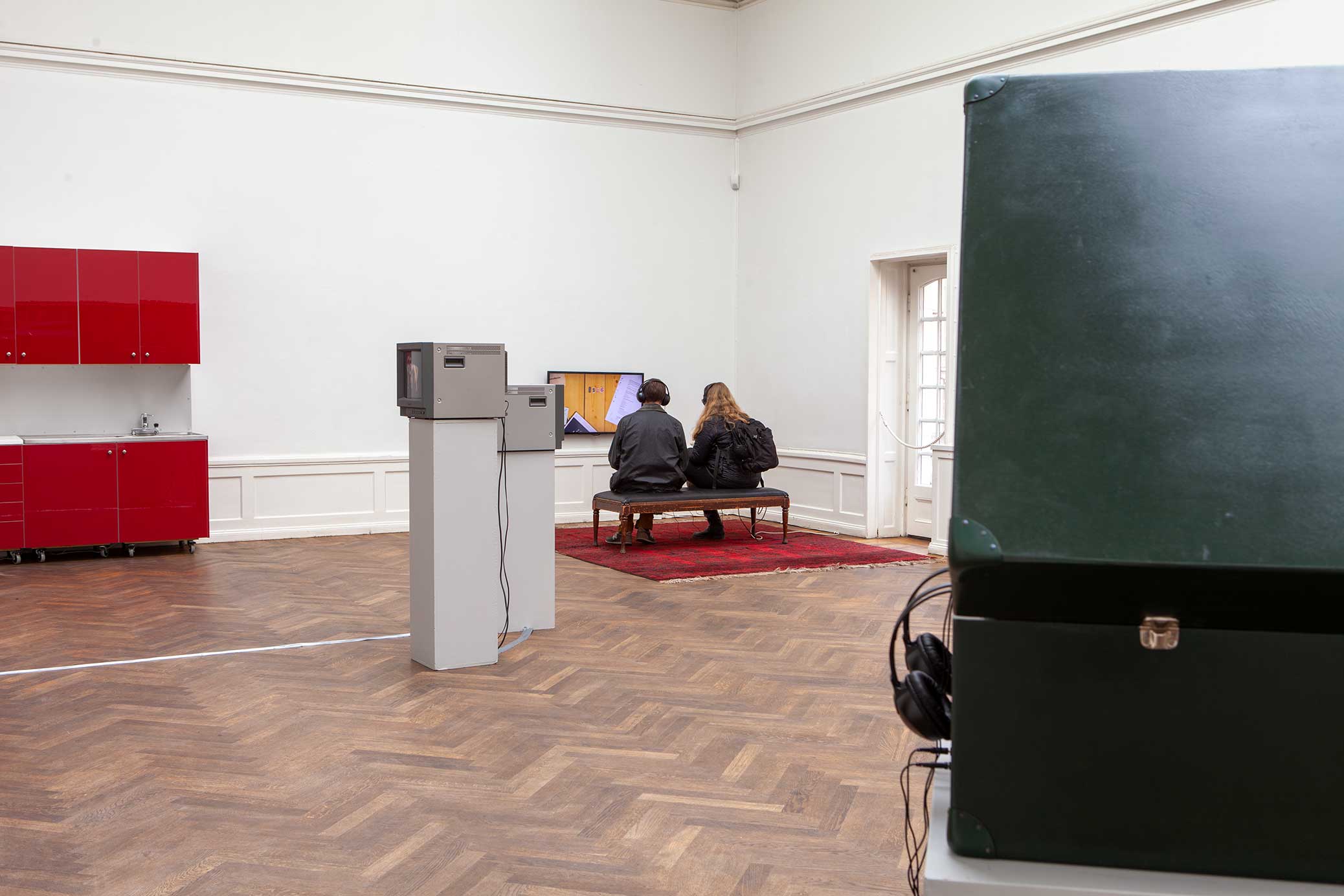 I Geschichten aus dem Koffer agerar en David Attenborough-lik voice-over ciceron i fem sådana berättelser inbyggda i en rejält uppförstorad skulptural scenografi. Även intresset för metakonst och konstnärens ekonomiska villkor finns representerat i form av Videokonstnären & pengarna.